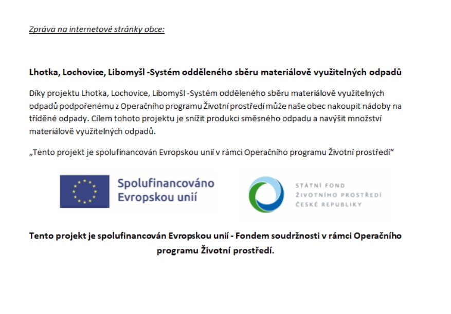 Lhotka, Lochovice, Libomyšl -Systém odděleného sběru materiálově využitelných odpadů